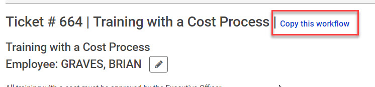 To copy any existing workflow click the Copy this workflow button found next to the ticket # / template name
